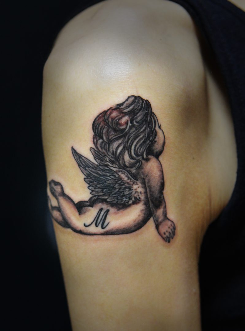 天使 Angel Upper Arm Tattoo 名古屋大須のタトゥー ボディピアススタジオ Vonschwartz Ryuji Tattoo Bodypiercing Studio Kaori Tattoos Piercings Blog